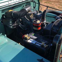 Todd sent us his 1953 Willys CJ-3B to be restored. This started a s a very clean, largely original “B” in primer paint with some odd 70’s chevy blazer seats. The Jeep ran decent, didnt smoke or knock. We tore the jeap down to the frame, rebuilt the axles, added disk brakes up front. painted and detailed the frame with new bushings and shackles on the springs. The motor ran pretty well, so no reason to rebuild it. We cleaned and painted the block, rebuilt the carb, all new gaskets, a new exhaust, a new clutch on resurfaced flywheel, and reseal and new fluids on the transmission and transfer case. The body required very little rust repair to get right. It was sprayed in 67 Julip Mint Metallic, the inside and under side were bedlined in matching color. Once the tub was back on the frame, we painted the wheels Dove grey, installed new tires and had to use a wheel spacer 1.25″ to clear the disk brake conversion. A modern “micro fuse” fuse box and HD wire harness was installed along with new gauges, new parking brake parts, a host of other new bits for the inside and to wrap it up a new steering wheel. The original seat frames had been cut up for the blazer seats. The owner like how they felt, so we re-upholstered them in Grey “sunbrella” type material, Rounding off the corners of the seats to give them a more vintage look. A new replacement CJ rear seat was also upholstered to match with chrome “aircraft” style seat belts in grey. There was obviously lots more work than I listed. However thats the main parts. This was a super fun build and I loved loved loved every test drive mile! the thumbs up and smiles this jeep brings is well worth the work. Thanks again Todd for allowing the Farm and crew to bring this old girl back to life.